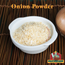 Dehydrated, ground onion that is commonly used as a seasoning. It is a common ingredient in seasoned salt and spice mixes, such as beau monde seasoning.